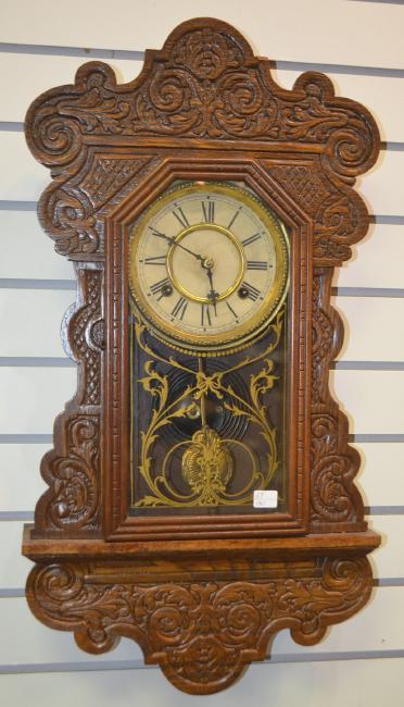 Antique Gilbert Kitchen Mantel Clock “Leopard”. Walnut Estimate: Auctioneer: Sold Price: Sold Date: Antique Ansonia Oak “T...