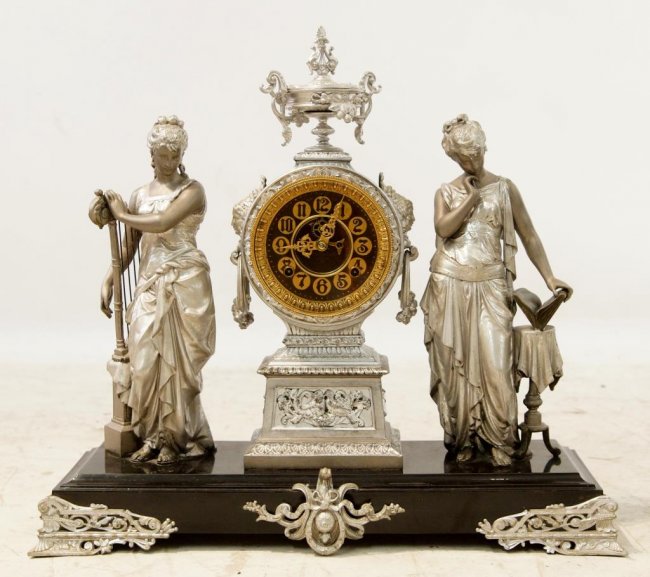 Antique ‘Music & Poetry’ Ansonia Silver Leaf clock