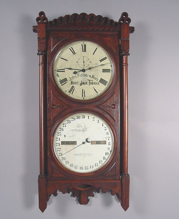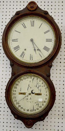 Antique Waterbury Double Dial Calendar Regulator #33 Estimate: Auctioneer: Sold Price: Sold Date: Waterbury Double Dial Calendar Regulator #...