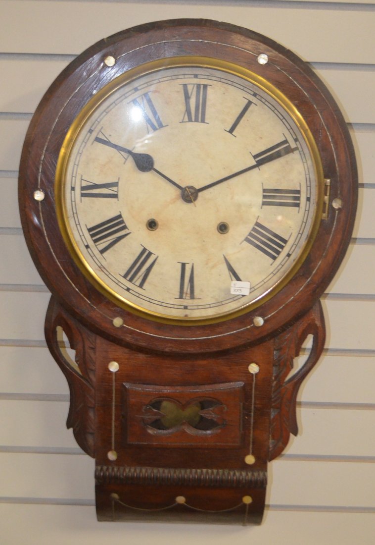 Antique EN Welch Wood Inlay Drop Clock Estimate: Auctioneer: Sold Price: Sold Date: Antique EN Welch Wood Inlay Drop Clock: 12" painted...