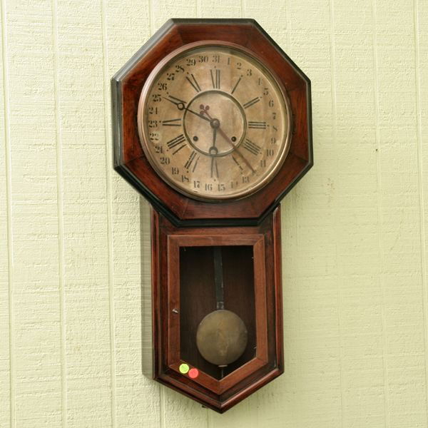 Antique Waterbury Octagon Calendar Wall Clock Estimate: Auctioneer: Sold Price: Sold Date: Antique Waterbury Octagon Calendar Wall Clock: 10...