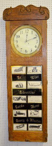 Seth Thomas Advertising Clock Estimate: Auctioneer: Sold Price: Sold Date: Seth Thomas Advertising Clock, large oak case with lower tablet r...