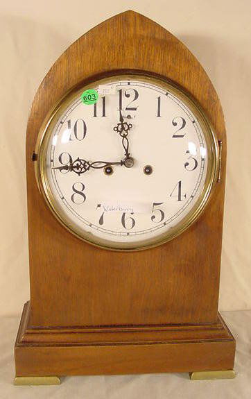Brewster and Ingrahams Gothic Mantel Clock Estimate: Auctioneer: Sold Price: Sold Date: Brewster and Ingrahams gothic mantel clock with refi...
