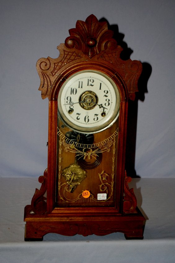 Antique Ingraham (Venetian) Wood mantle Clock Estimate: Auctioneer: Sold Price: Sold Date: Antique Ingraham (Venetian) Wood mantle Clock, 5&...