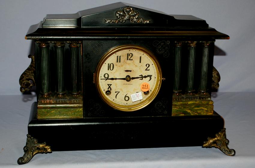 Antique Ingraham “Cabinet No. 8” Clock. Dark oak case Estimate: Auctioneer: Sold Price: Sold Date: Antique Ingraham “Cabin...