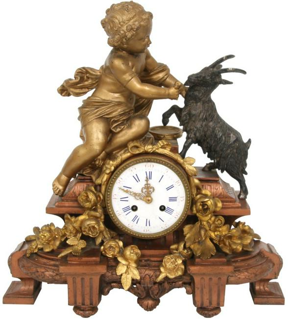 French Figural Clock with Putti & Goat Estimate: Auctioneer: Sold Price: Sold Date: French Figural Clock with Putti & Goat. The 8 da...