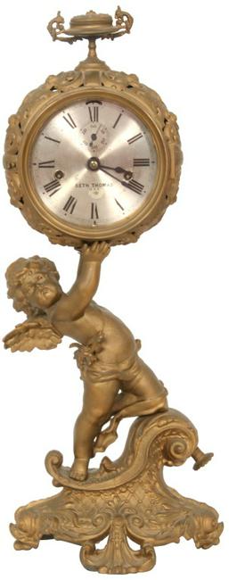 Seth Thomas Figural Cherub Clock Estimate: Auctioneer: Sold Price: Sold Date: Seth Thomas Figural Cherub Clock. Spelter figure of a winged c...