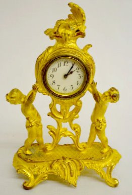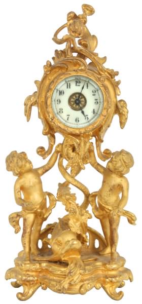 Jennings Bros. Figural Gilt Metal Clock Estimate: Auctioneer: Sold Price: Sold Date: Jennings Bros. clock having a French rococo style spelt...