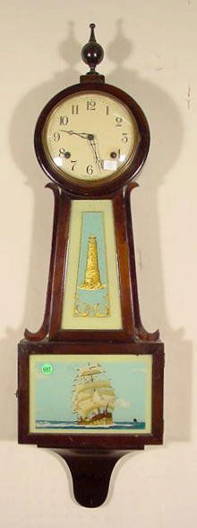 Antique Sessions “Revere” Banjo Clock. Mahogany case Estimate: Auctioneer: Sold Price: Sold Date: Antique Sessions “Revere...