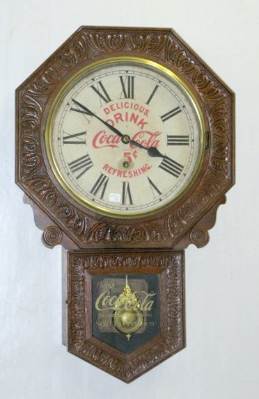 Antique Adv Store Regulator Wall Clock Estimate: Auctioneer: Sold Price: Sold Date: Antique Adv Store Regulator Wall Clock: 12" Coca-Co...