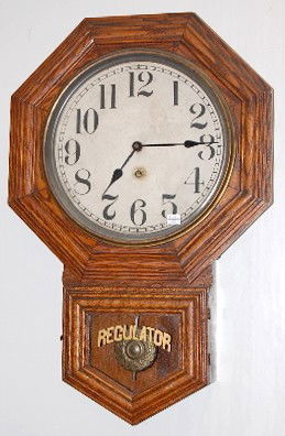 Antique Adv. Drop Regulator Clock Estimate: Auctioneer: Sold Price: Sold Date: Antique Adv. Drop Regulator Clock: 10" painted dial, bra...
