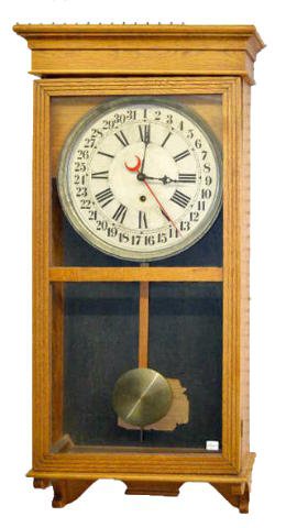 Antique Sessions Oak Cabinet Clock Estimate: Auctioneer: Sold Price: Sold Date: Antique Sessions Oak Cabinet Clock: signed dial, brass T&...
