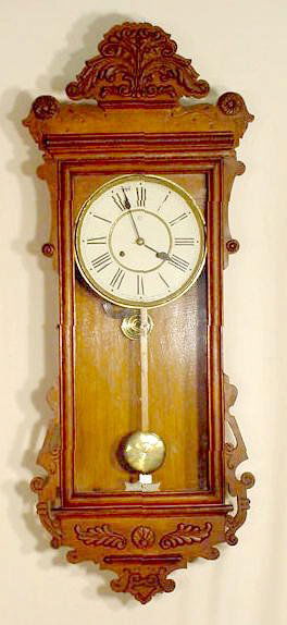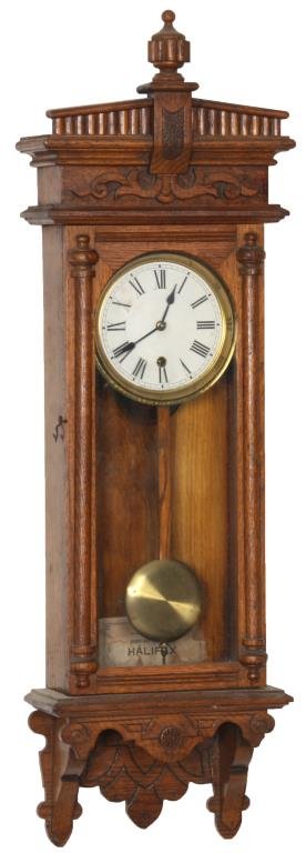 Waterbury "Halifax" Wall Clock Estimate: Auctioneer: Sold Price: Sold Date: Waterbury "Halifax" wall clock in a refinish...