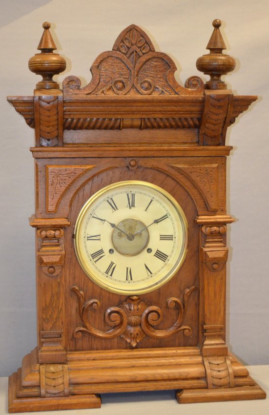 Antique Waterbury (Washington) wood mantle clock Estimate: Auctioneer: Sold Price: Sold Date: Antique Waterbury (Washington) wood mantle clo...