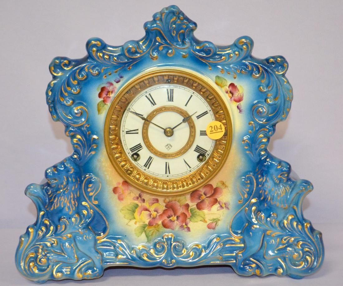 Antique English Porcelain Mantle Clock Estimate: Auctioneer: Sold Price: Sold Date: Antique English Porcelain Mantle Clock, 3 1/2" meta...
