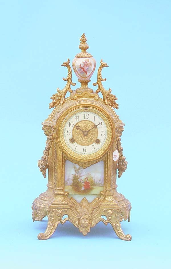 Large French Dore Mantel Clock Estimate: Auctioneer: Sold Price: Sold Date: Circa 1850 French Japy Feres 8 day Mantel Clock with 6″ Go...