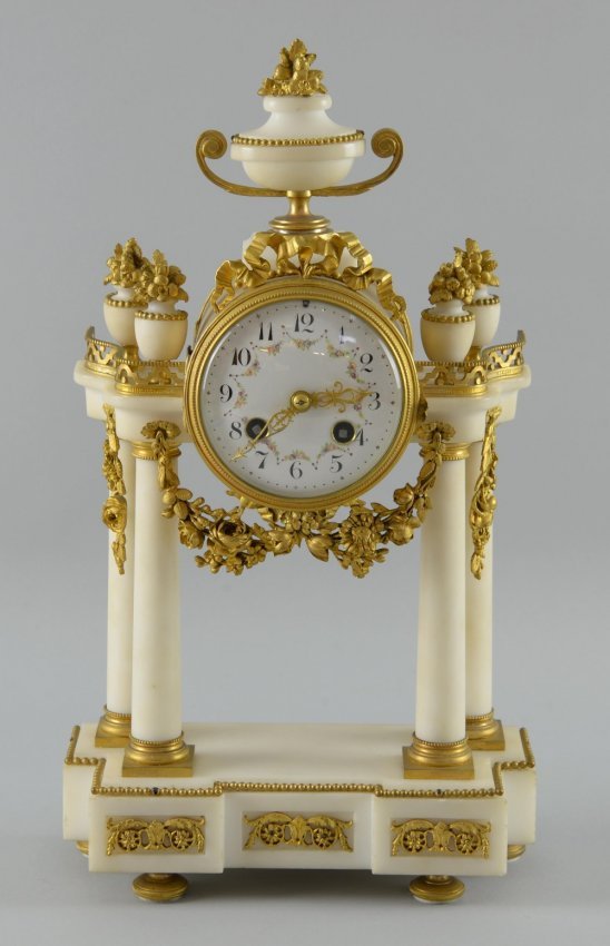 Large Marble & Brass Portico 3 Pc Clock Set Estimate: Auctioneer: Sold Price: Sold Date: Circa 1910 French Japy Feres 8 day Mantel Clock...