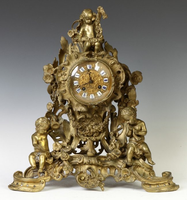 Antique French 3-Piece Clock Estimate: Auctioneer: Sold Price: Sold Date: Antique French 3-Piece Clock: Fancy hands and porcelain dial. Sels...
