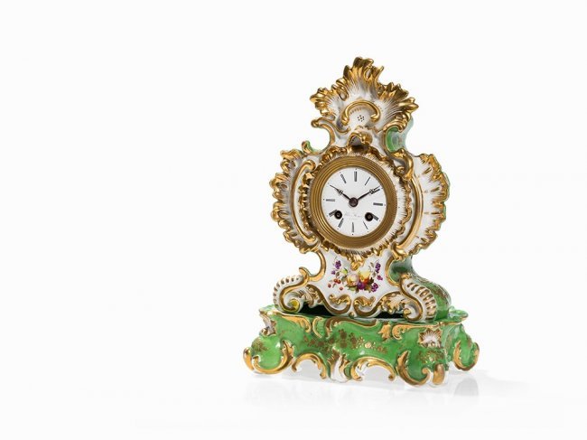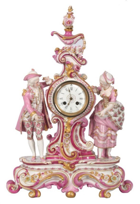 3 Pc. Meissen Porcelain Clock Set Estimate: Auctioneer: Sold Price: Sold Date: 3 Pc. Meissen Porcelain Clock Set. 2 opposite facing winged p...